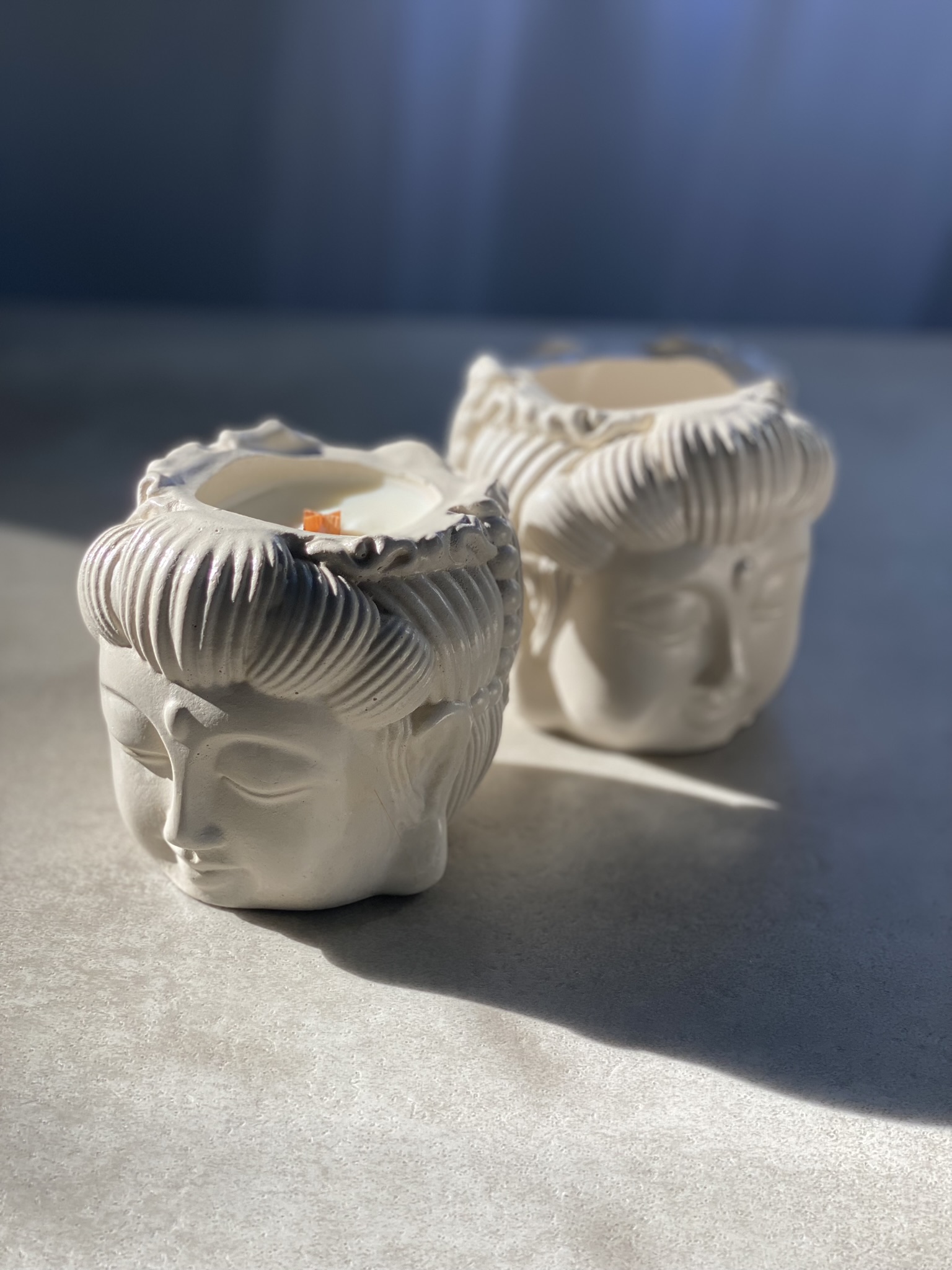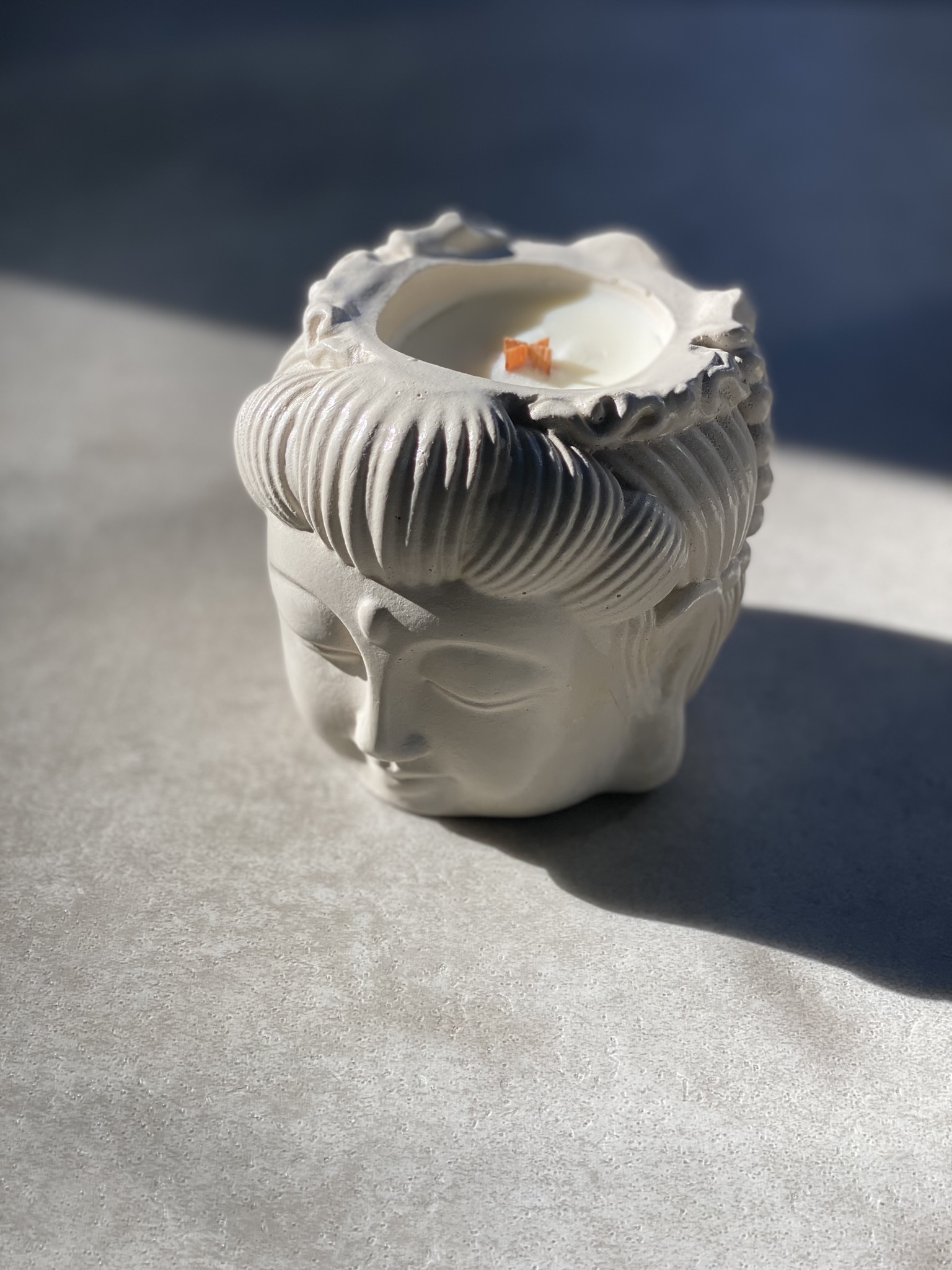 Po wypaleniu świecy wystarczy umyć pojemnik, osuszyć i możesz cieszyć się wyjątkowym pojemnikiem na długopisy, pędzle i różne drobiazgi w kształcie głowy hinduskiej piękności.