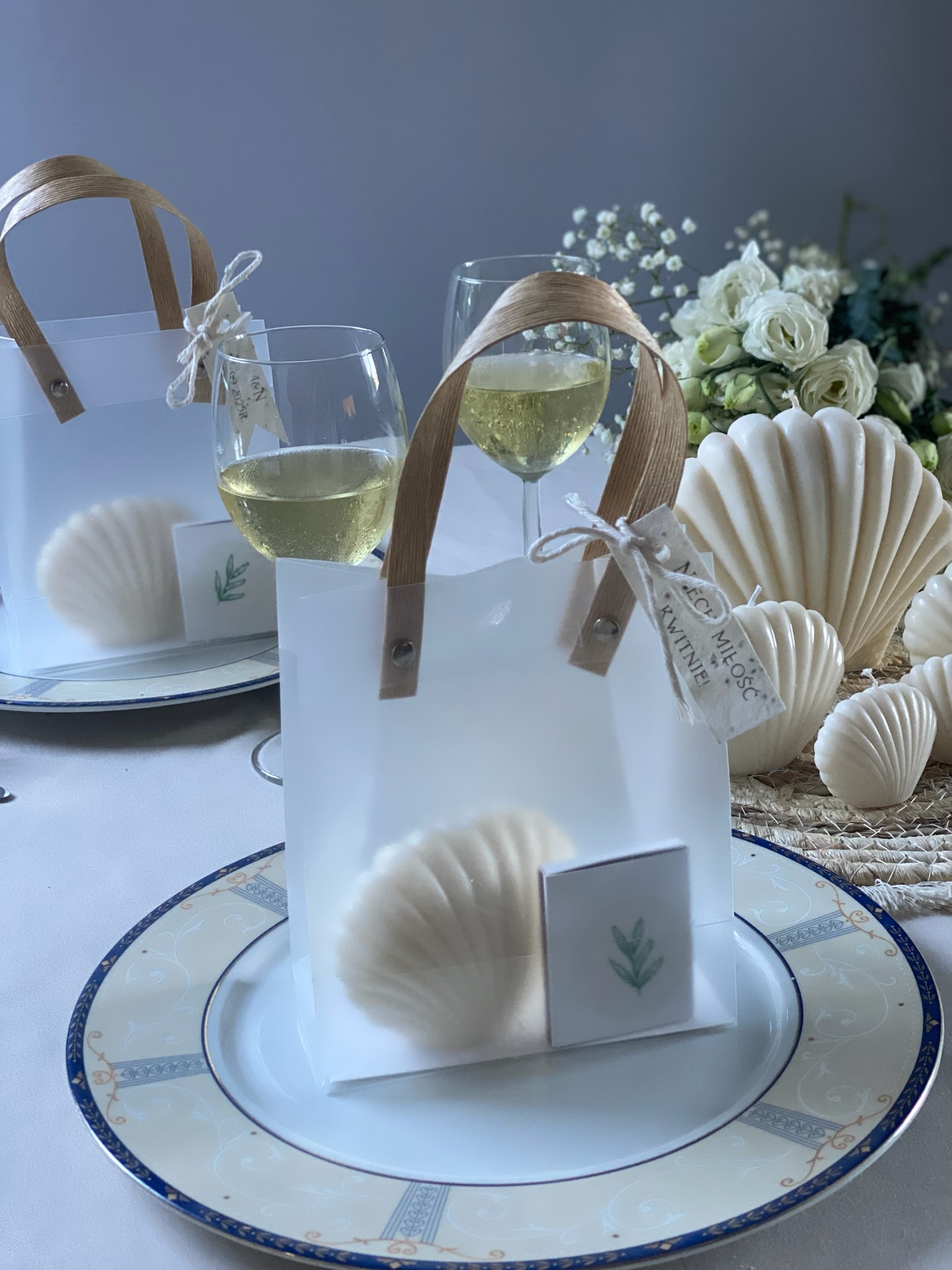 Torebka prezentowa (biała, półprzeźroczysta) oraz białe, eleganckie zapałki – cena 5 zł/ szt.