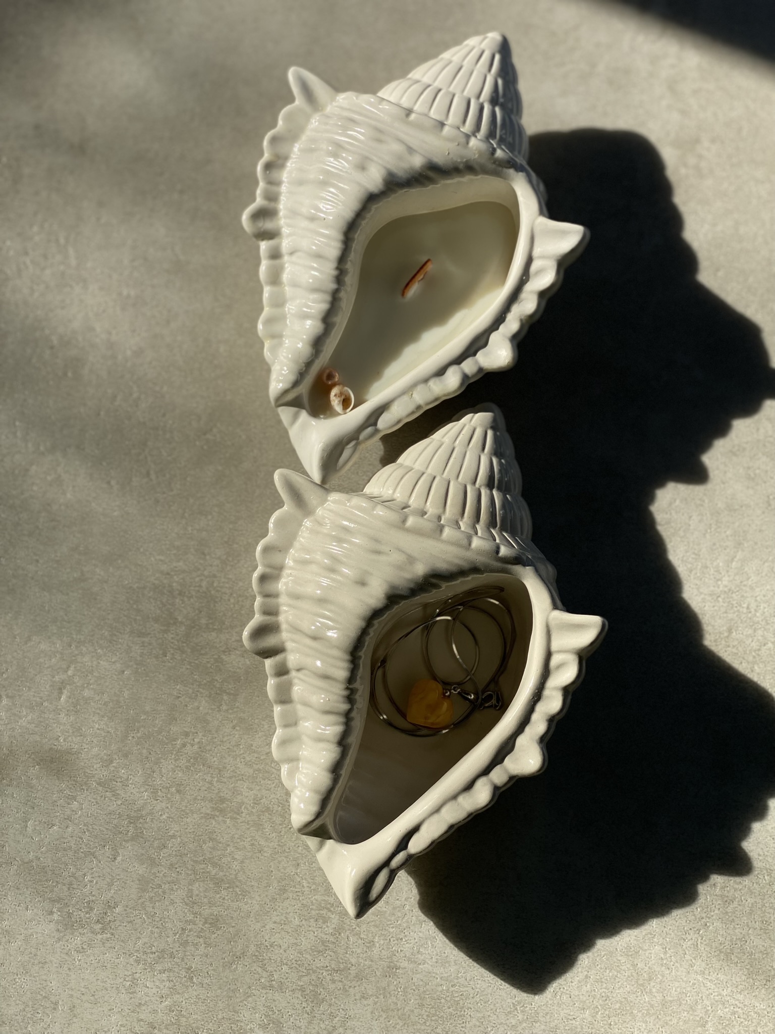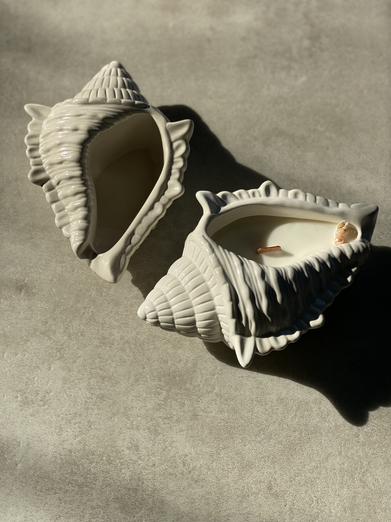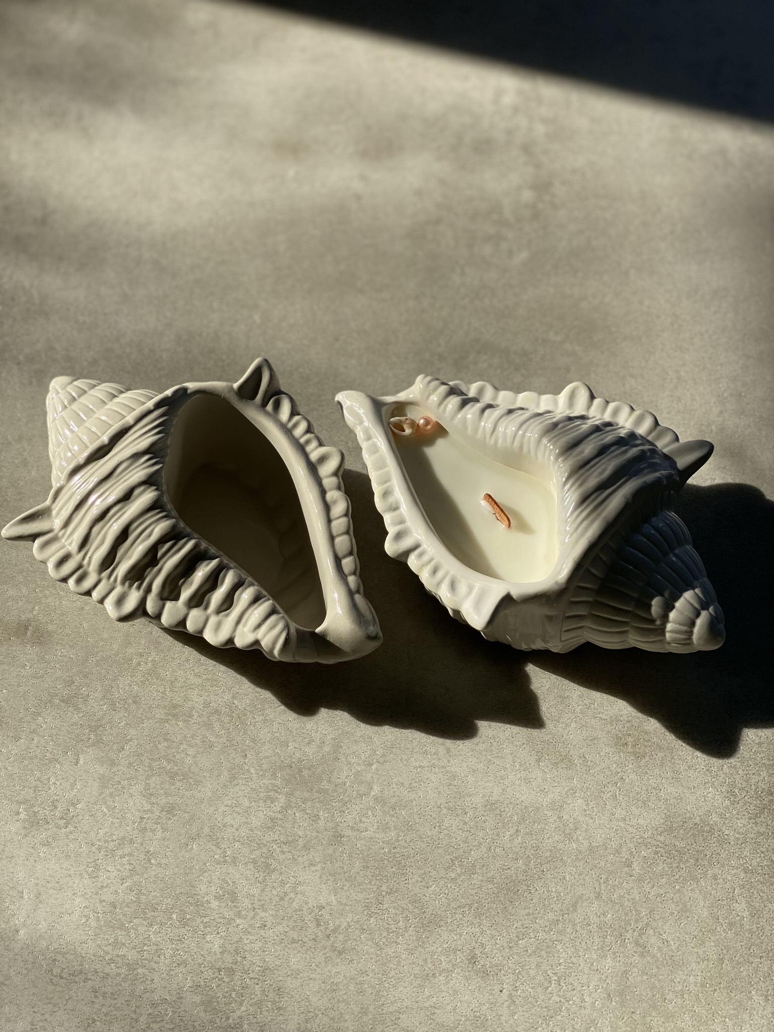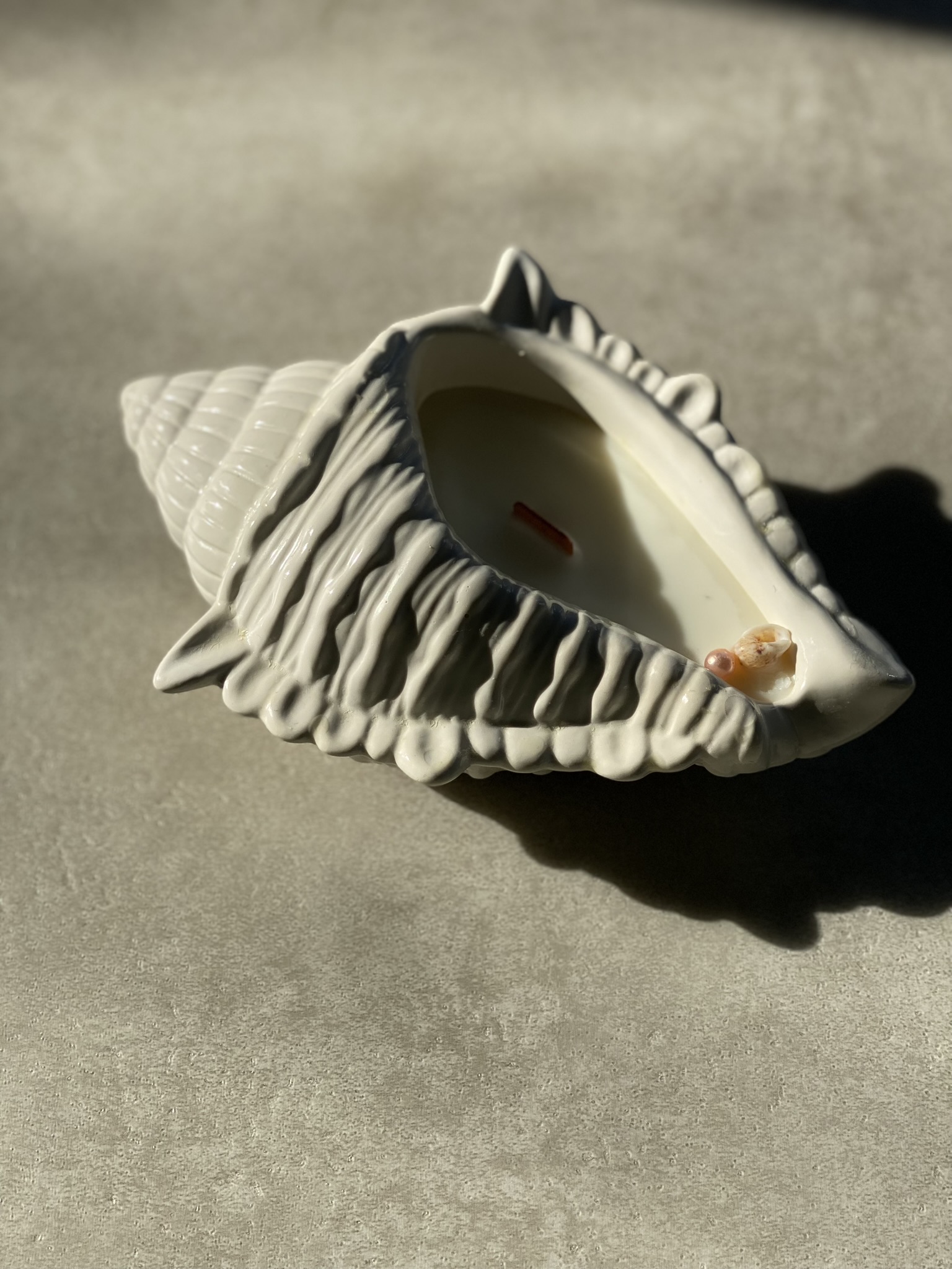 Muszelka Wzór 1. to jedna ze świec zapachowych w gipsowych pojemnikach w kształcie morskiej muszli. Wiedząc, że moi klienci lubią mieć wybór, masz możliwość samodzielnego zaprojektowania świecy i wybrania jednego z kilkunastu kompozycji zapachowych kolekcji Basic. Świeca dostępna w pojemniku w naturalnym (jasnoszarym) kolorze gipsu polimerowego.