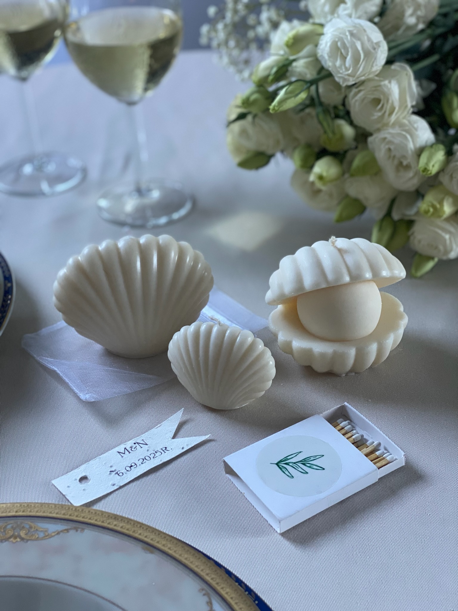 Świeca Muszelka z Perłą powstała w małej pracowni rękodzieła, a jej skład jest prosty i bezpieczny dla zdrowia. Używam wyłącznie 100%naturalny (biodegradowalny, bez GMO, bez dodatku parafiny) wosk sojowy ze sprawdzonej plantacji. Dzięki temu, świece palą się dwukrotnie dłużej niż te z sieciówki (parafinowe). Ręcznie impregnuję sznurek bawełniany woskiem sojowym, dobieram odpowiedni splot do średnicy świecy. Daje to gwarancję zdrowego składu – bez domieszek parafiny, bez ołowiu. Podczas spalania nie emituje szkodliwych substancji (jak benzen czy formaldehyd), spala się bezdymnie. Jest przyjazna weganom– nie testowana na zwierzętach, używam jedynie surowców pochodzenia roślinnego.