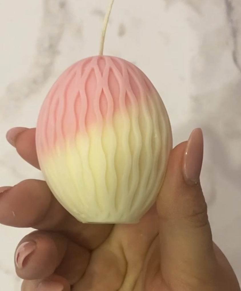Świeca Pisanki – Fala wymaga podstawki, ponieważ wosk topiąc się wypływa poza jej formę.