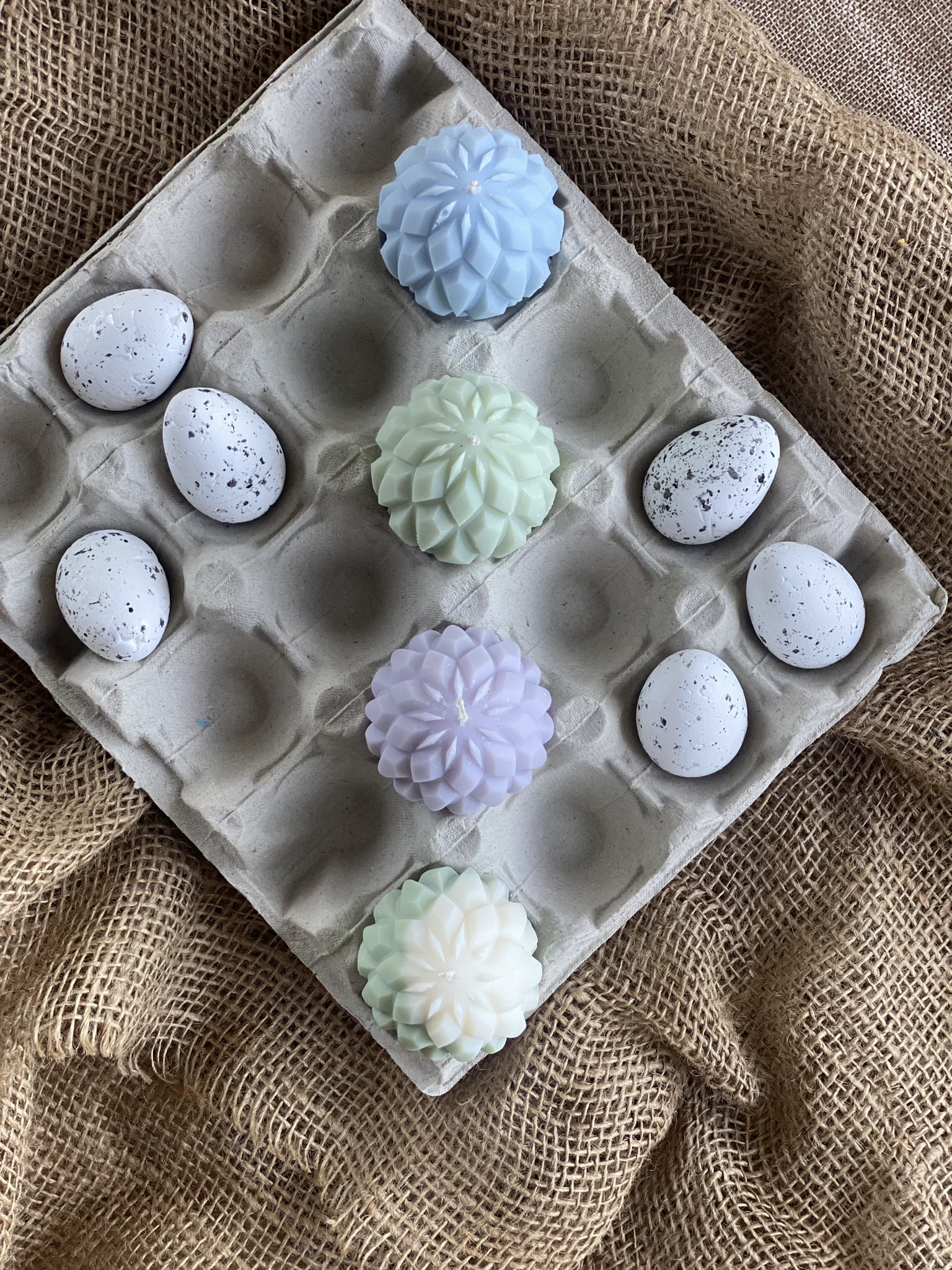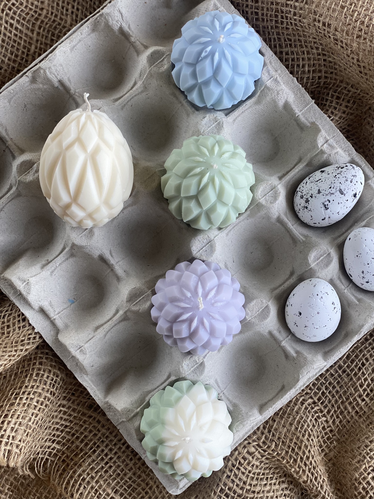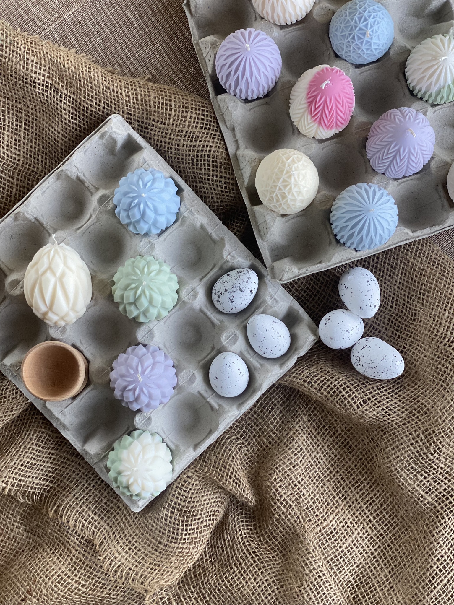 Pisanki – Geometryczny wzór- to ręcznie robiona świeca sojowa w kształcie świątecznej pisanki z głębokim, geometrycznym żłobieniem ( wzór 2/3). Dzięki swojemu wyjątkowemu kształtowi jest to nietuzinkowa i praktyczna ozdoba na Wielkanoc. Czysta prostota składu i formy. Dostępne w naturalnym kolorze wosku (od złamanej bieli po ecru) lub w jasnych kolorach: różowy, zielony, błękitny, pomarańczowy, liliowy, żółty lub w wersji dwu kolorowej (naturalny + kolor). Zawsze używam wyłącznie barwików pochodzenia roślinnego.
