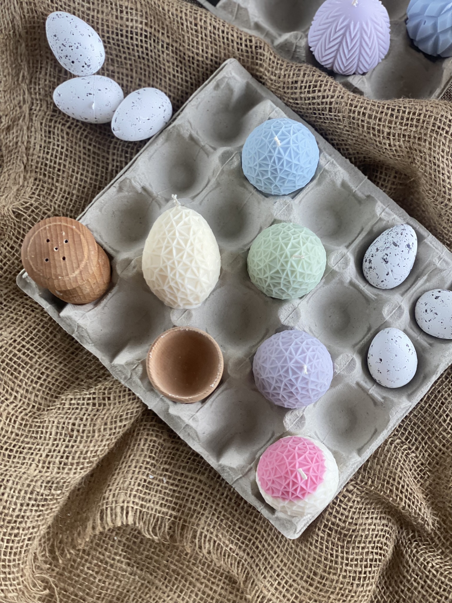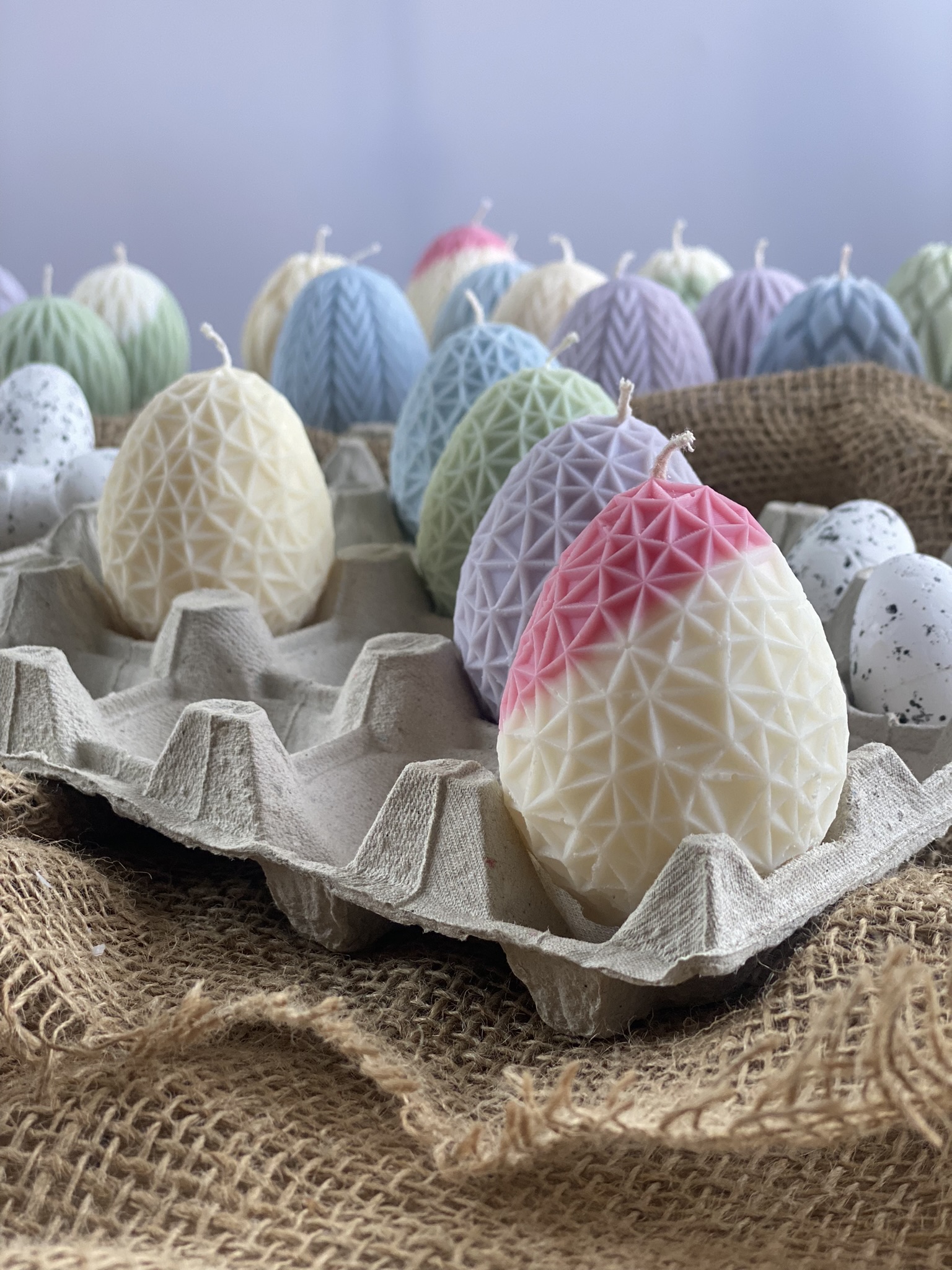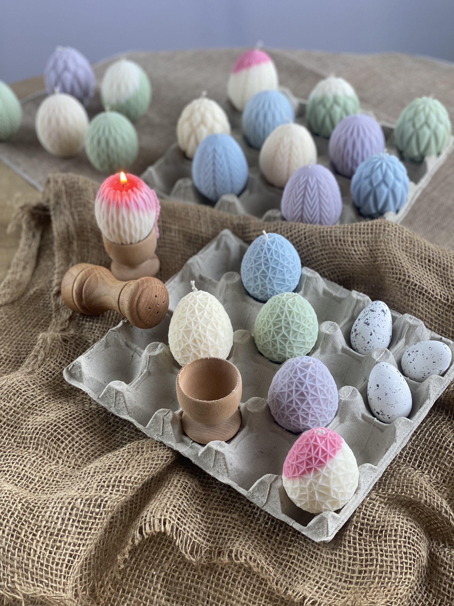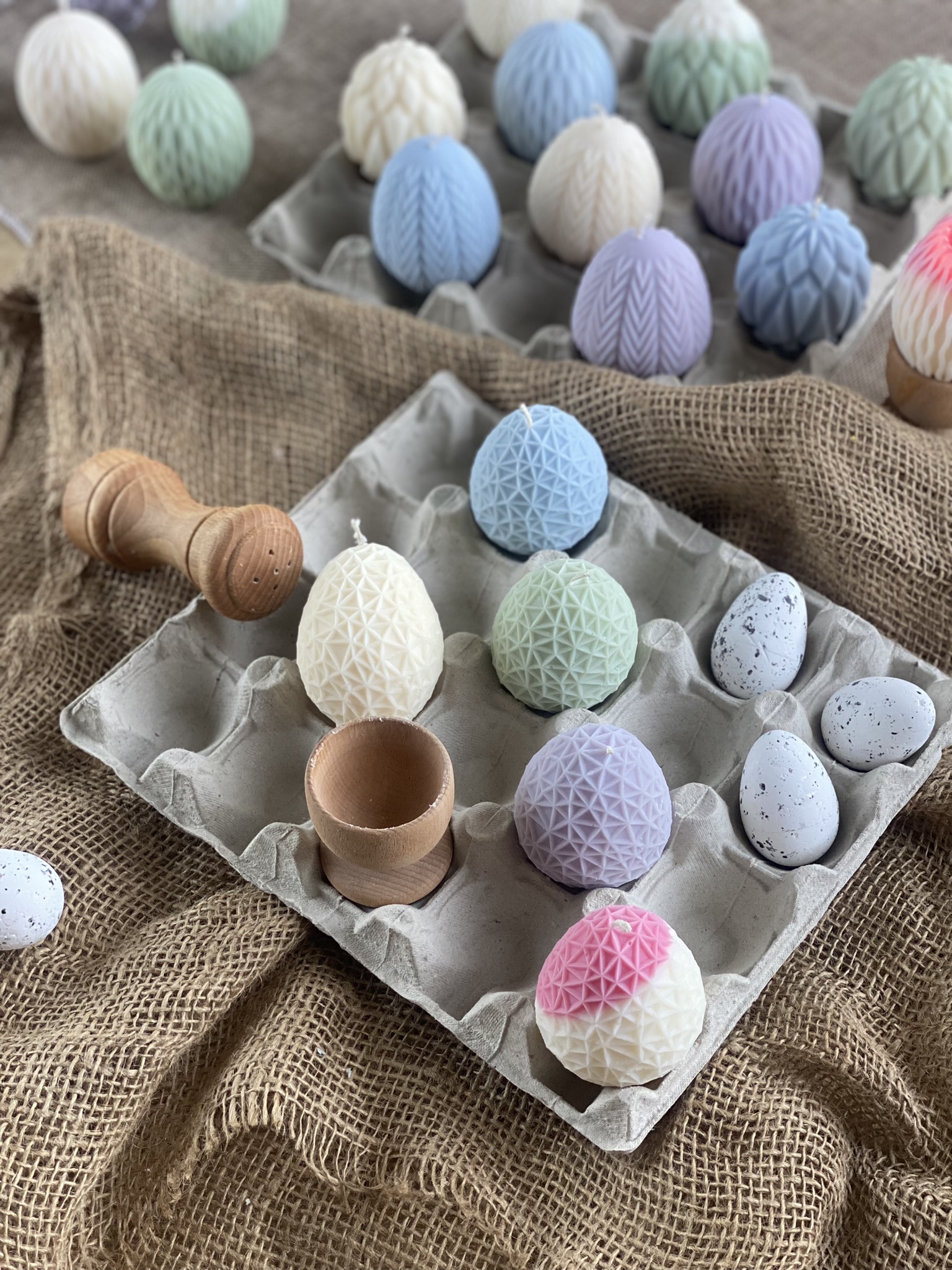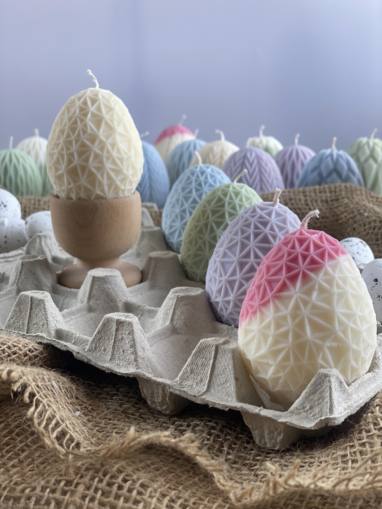Pisanki Pajęczyna to ręcznie robiona świeca sojowa w kształcie świątecznej pisanki ze żłobieniem przypominającym pajęczynę ( wzór 1/4). Dzięki swojemu wyjątkowemu kształtowi jest to nietuzinkowa i praktyczna ozdoba na Wielkanoc. Czysta prostota składu i formy. Dostępne w naturalnym kolorze wosku (od złamanej bieli po ecru) lub w jasnych kolorach: różowy, zielony, błękitny, pomarańczowy, liliowy, żółty lub w wersji dwu kolorowej (naturalny + kolor). Zawsze używam wyłącznie barwików pochodzenia roślinnego.