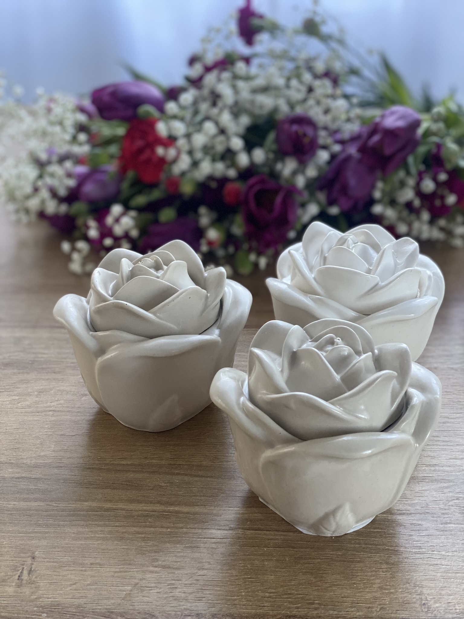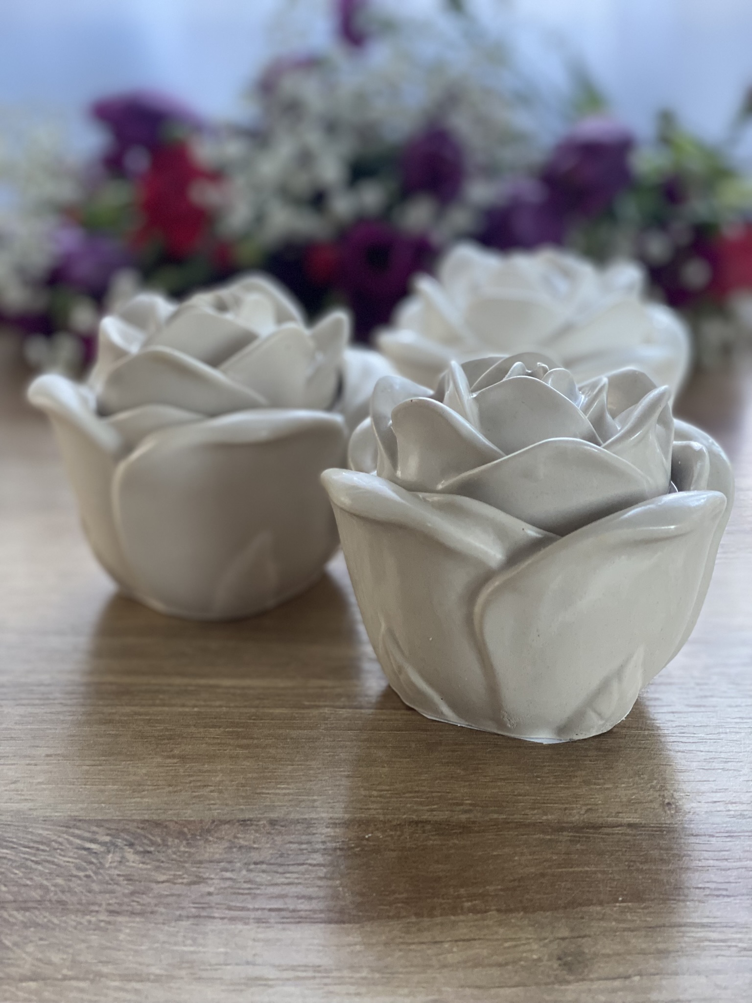 Róża to jedna ze świec zapachowych w gipsowych pojemnikach. Wiedząc, że moi klienci lubią mieć wybór, masz możliwość samodzielnego zaprojektowania świecy i wybrania jednego z kilkunastu kompozycji zapachowych kolekcji Basic. Świeca wygląda jak pąk róży, dostępna w naturalnym (jasnoszarym) kolorze gipsu. Najczęściej wybieracie do niego zapach Róża.