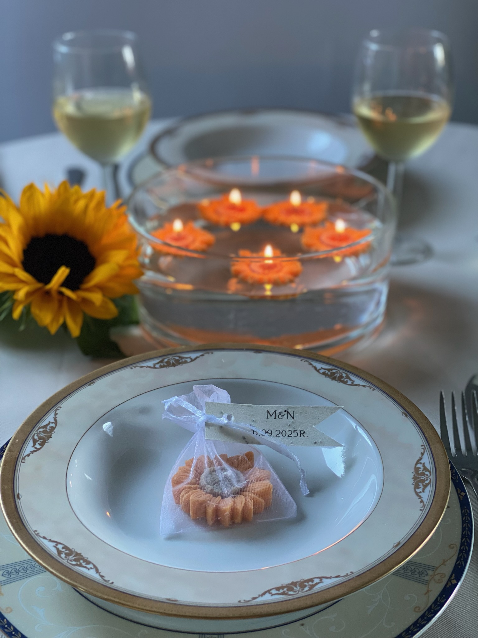dekoracyjna, pływająca świeca sojowa Słonecznik