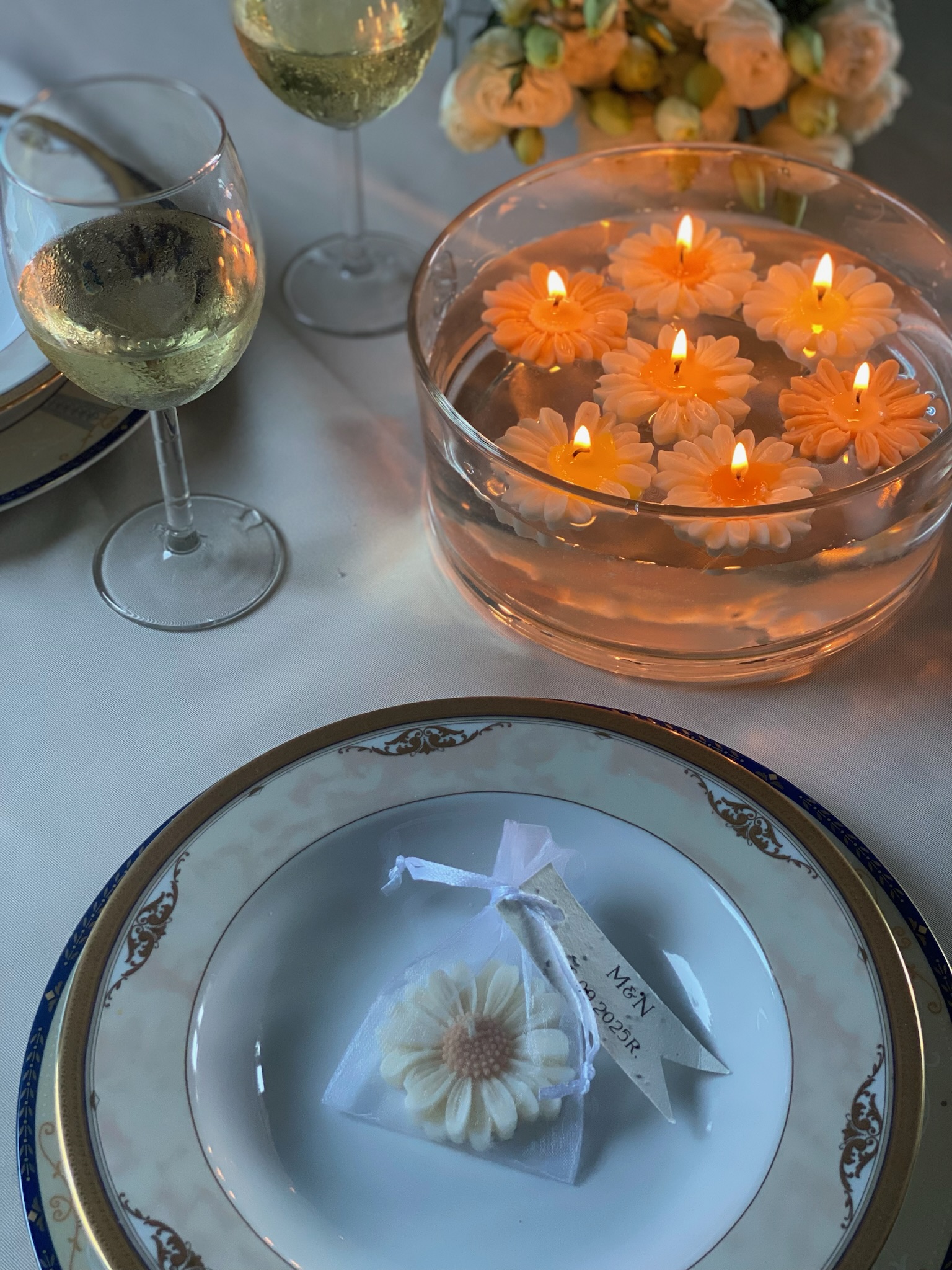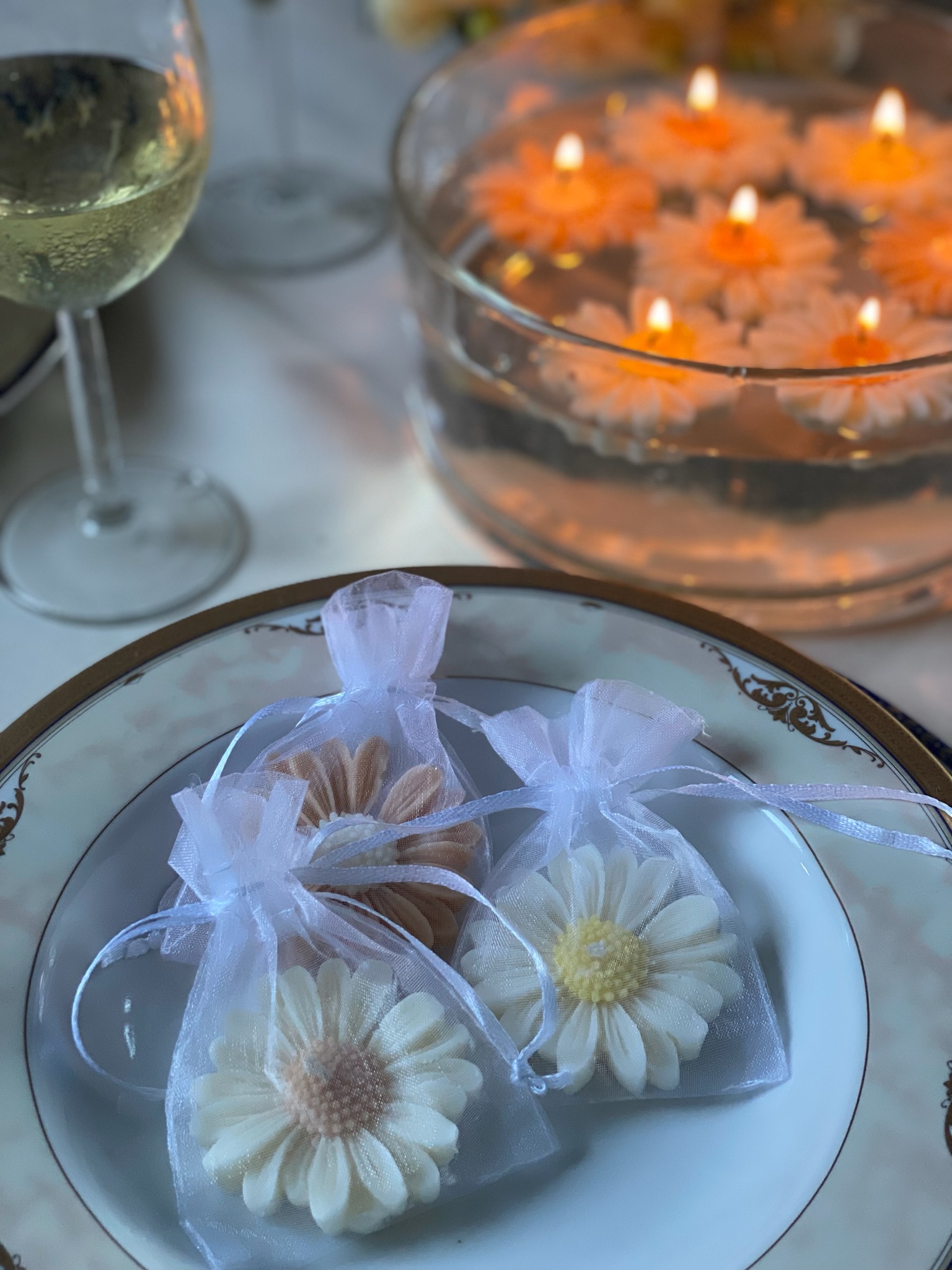 dekoracyjna, pływająca świeca sojowa Stokrotka