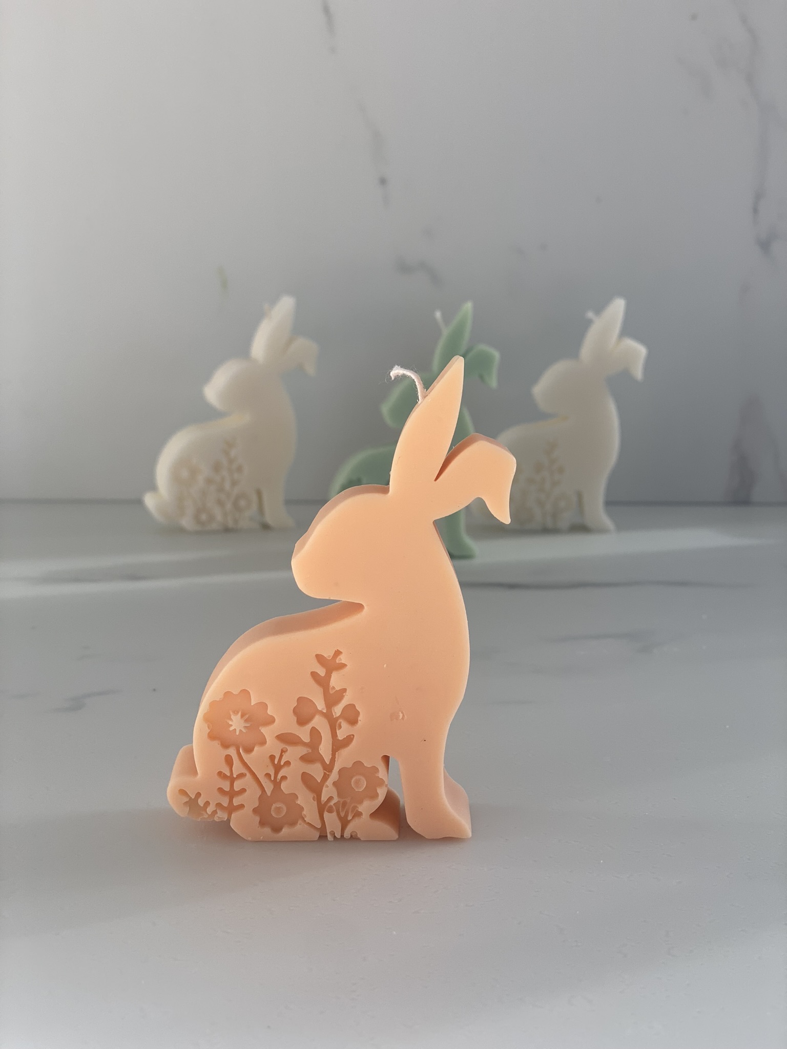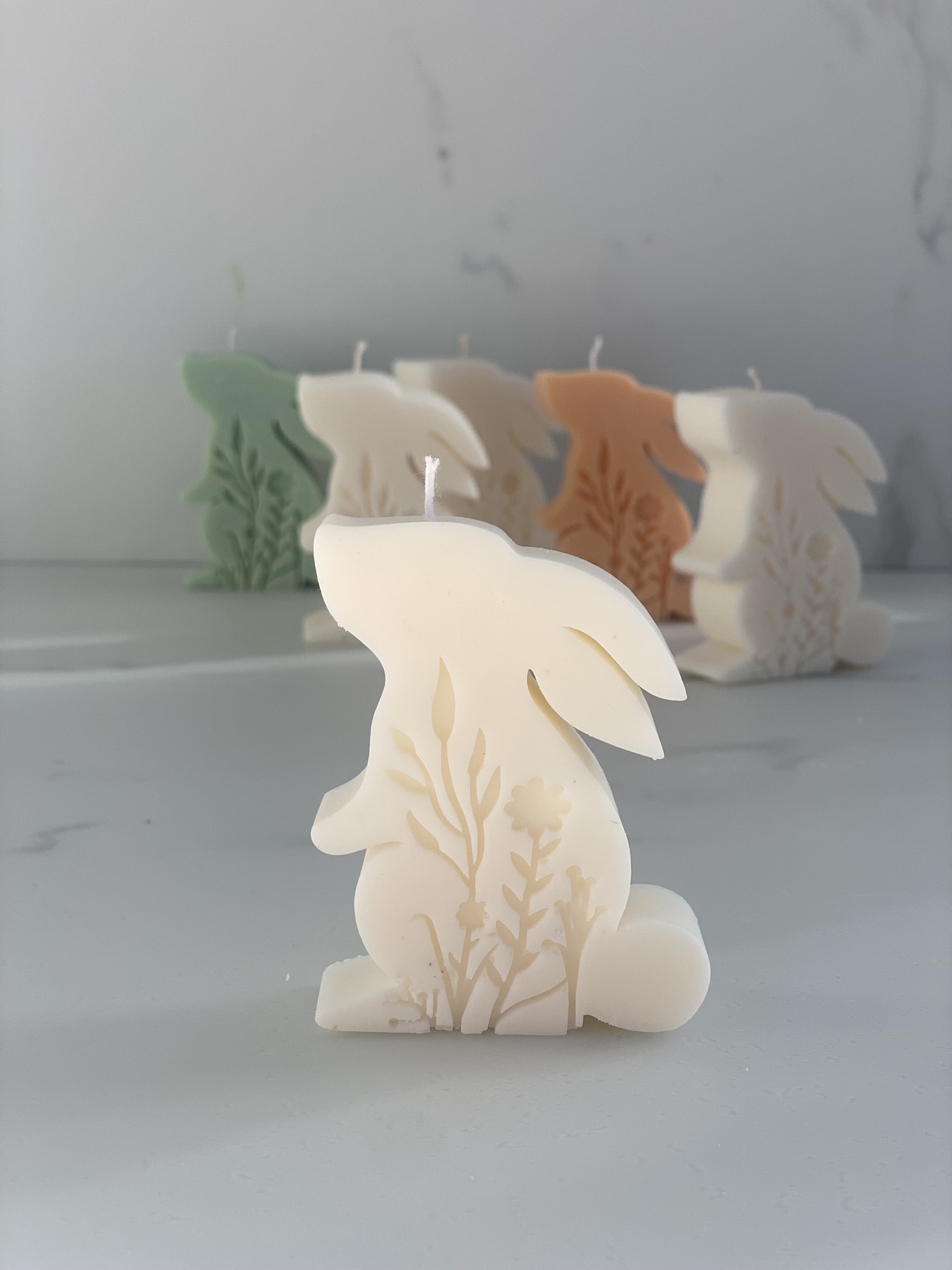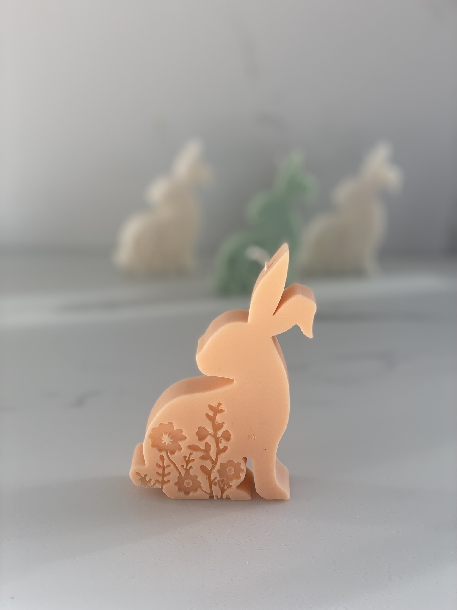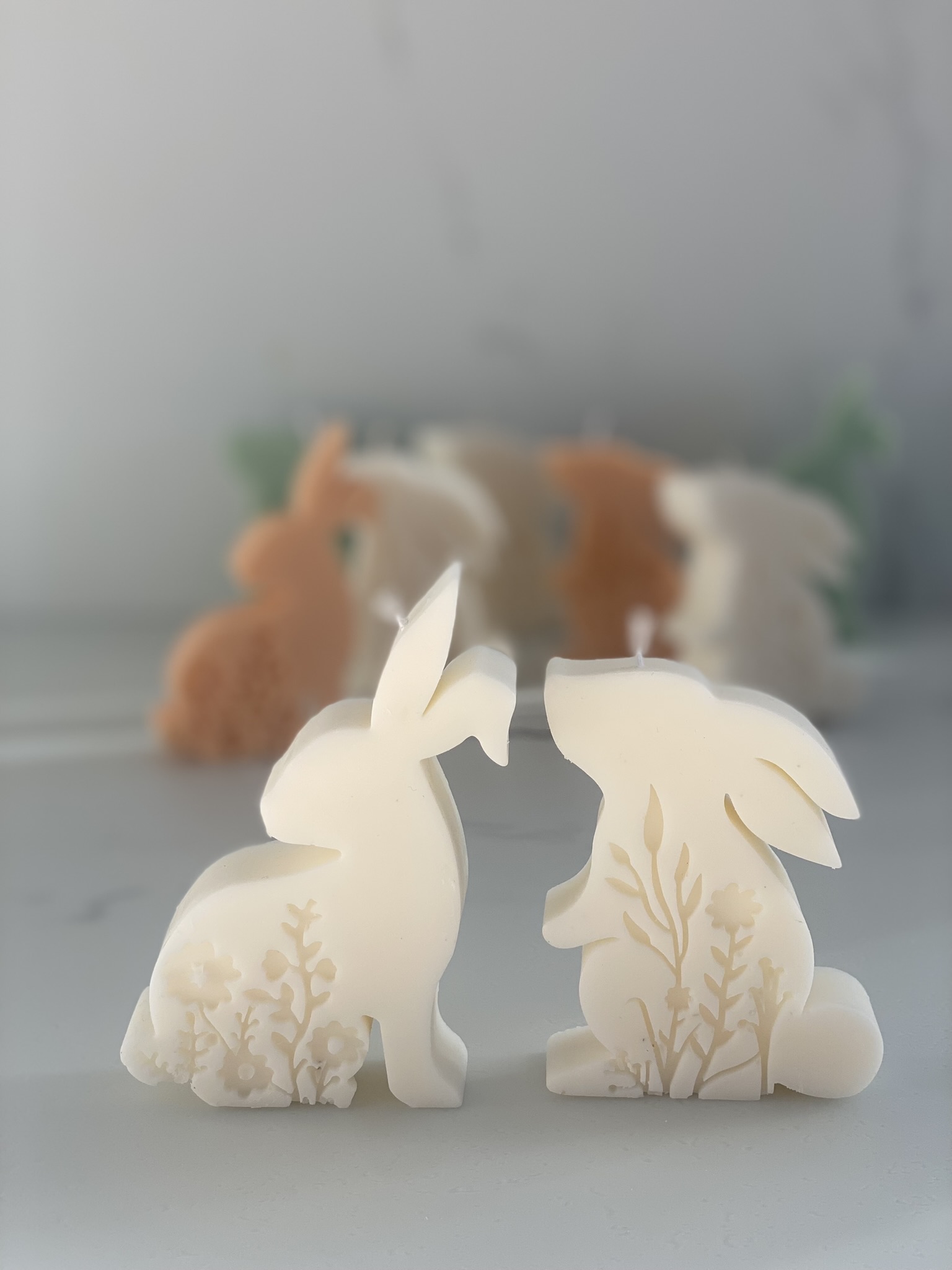 Zając Na Łące to   dwa urocze wzory do wyboru. Zajączki mają wyraźnie kwiatowe zdobienie. Dzięki swojemu wyjątkowemu kształtowi jest to nietuzinkowa i praktyczna ozdoba na Wielkanoc. Czysta prostota składu i formy. Dostępne w naturalnym kolorze wosku (od złamanej bieli po ecru) lub w jasnych kolorach: różowy, zielony, błękitny, pomarańczowy, liliowy.  Zawsze używam wyłącznie barwików pochodzenia roślinnego.